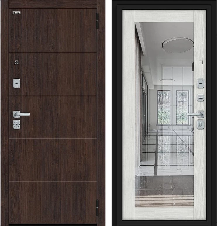 Надежная входная Дверь Браво Флэт/BChrome Almon/Bianco Melinga премиум класса по цене 42 567 руб. Большая толщина стали защитит от проникновения в ваш дом, квартиру или коттедж. Используется очень качественная фурнитура: замки, цилиндры, ручки, защелки. Покрытие и отделка двери изготовлено под внимательным контролем производителя. Дверь имеет долгий срок службы и гарантию.