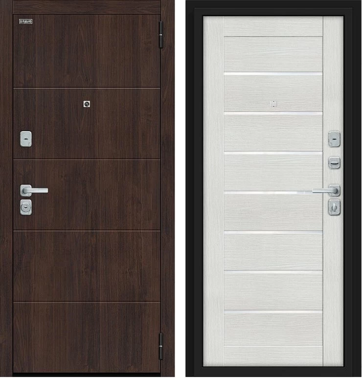 Надежная входная Дверь Браво Прайм/BChrome Almon/Bianco Melinga премиум класса по цене 39 867 руб. Большая толщина стали защитит от проникновения в ваш дом, квартиру или коттедж. Используется очень качественная фурнитура: замки, цилиндры, ручки, защелки. Покрытие и отделка двери изготовлено под внимательным контролем производителя. Дверь имеет долгий срок службы и гарантию.