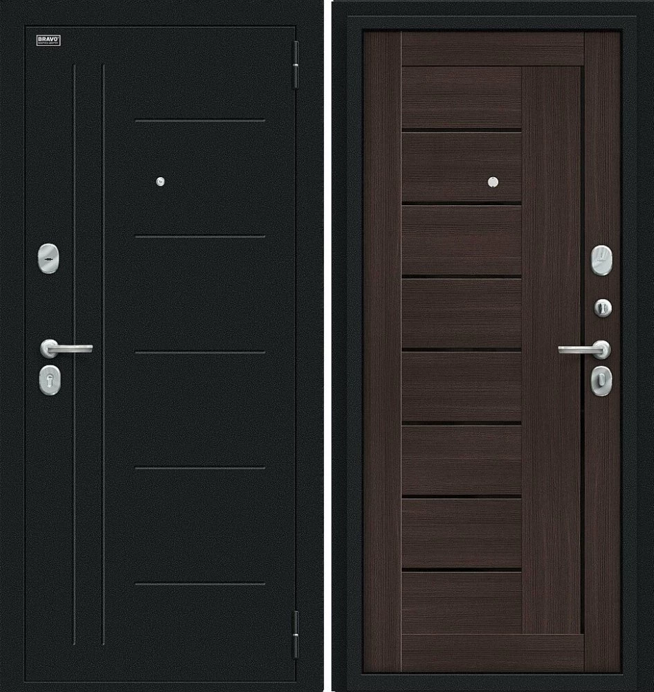 Надежная входная Дверь Браво Проф Букле черное/Wenge Veralinga премиум класса по цене 32 967 руб. Большая толщина стали защитит от проникновения в ваш дом, квартиру или коттедж. Используется очень качественная фурнитура: замки, цилиндры, ручки, защелки. Покрытие и отделка двери изготовлено под внимательным контролем производителя. Дверь имеет долгий срок службы и гарантию.